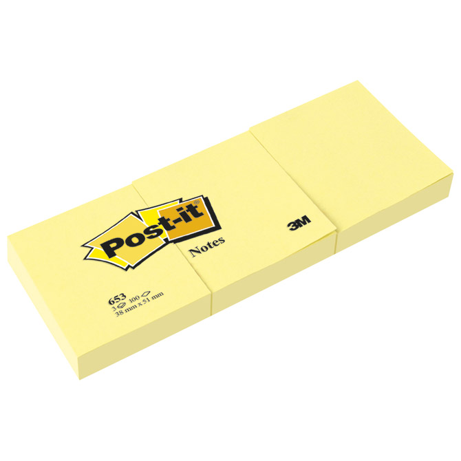 3M 653 Jegyzettömb öntapadó 38x51mm 3x100lap, sárga