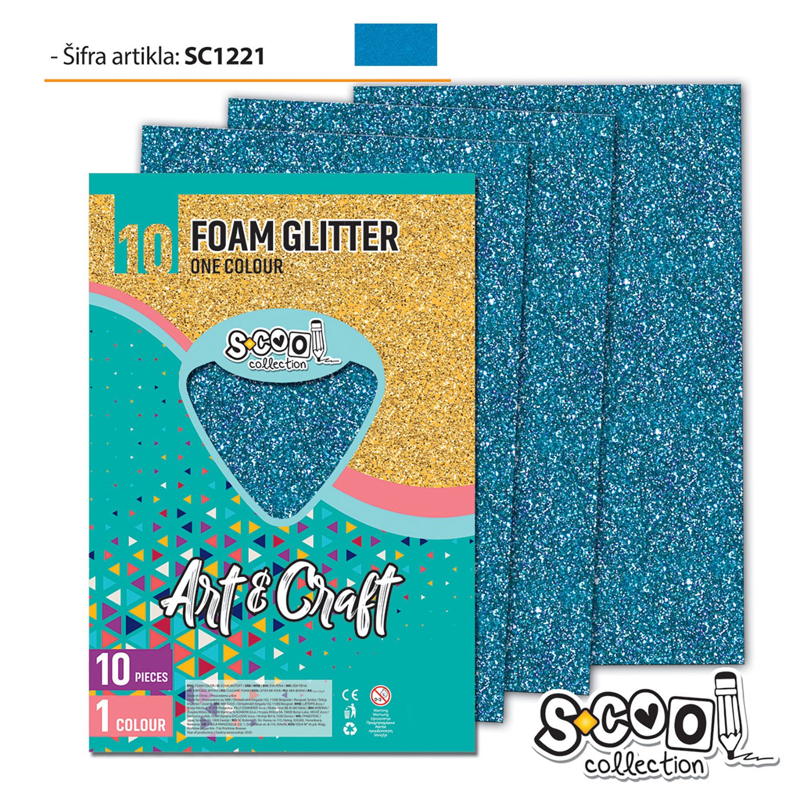 Dekorgumi-hab glitteres S-CooL SC1221 Art&Craft A4 10ív világos kék