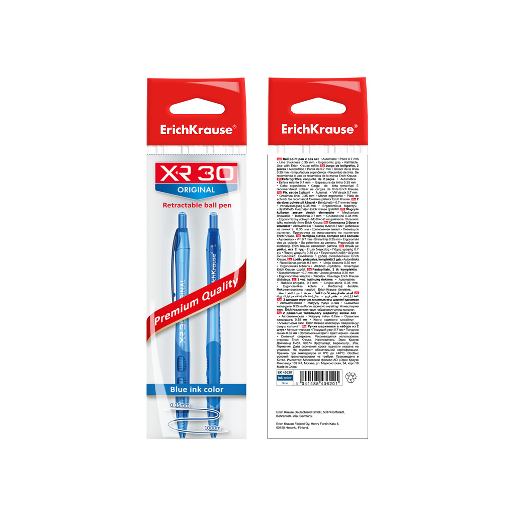 Golyóstoll ErichKrause XR-30 Spring nyomógombos 2db 43621 kék tinta