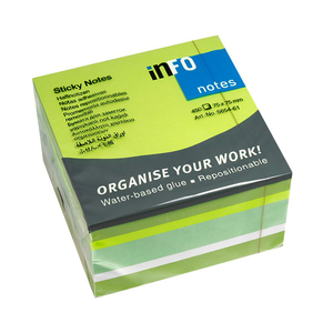 Jegyzettömb InfoNotes öntapadós, 75x75 mm, 450 lap, intenzív színek (zöld árnyalatok)