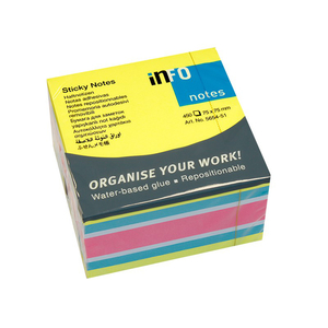 Jegyzettömb InfoNotes öntapadós, 75x75 mm, 450 lap, neon színek (sárga, kék, pink)