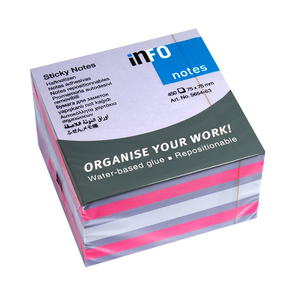 Jegyzettömb InfoNotes öntapadós, 75x75 mm, 450 lap, pasztell színek (pink, fehér,lila)
