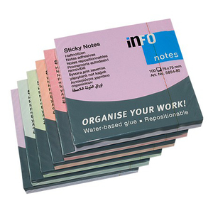 Jegyzettömb InfoNotes öntapadós, 75x75 mm, 6x100 lap, HARMONY (lila, sárga, zöld, kék, barack, rózsa )