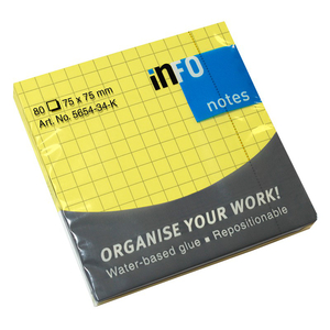 Jegyzettömb InfoNotes öntapadós 75x75 mm NEON KOCKÁS 80 lap neon sárga