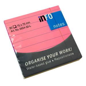 Jegyzettömb InfoNotes öntapadós 75x75 mm NEON VONALAS 80 lap neon rózsaszín